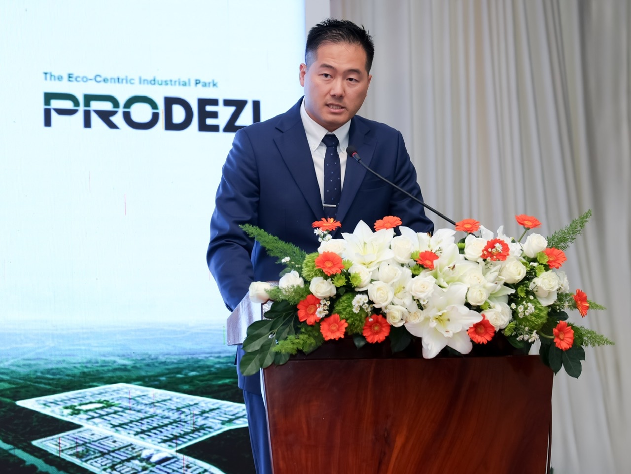 Ông Trương Khắc Nguyên Minh chia sẻ về định hướng phát triển hạ tầng công nghiệp hiện đại và các cam kết hỗ trợ nhà đầu tư quốc tế của Prodezi