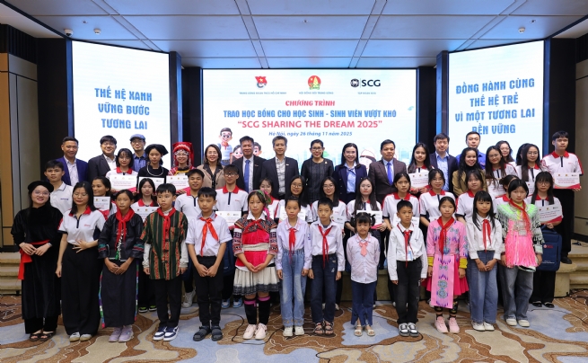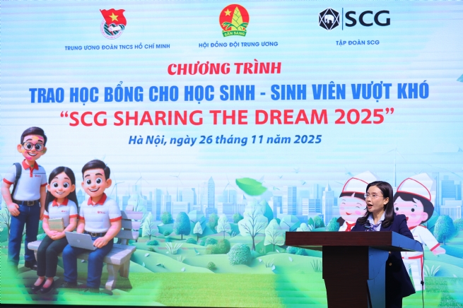 Phối hợp cùng Trung ương Đoàn TNCS Hồ Chí Minh và Hội đồng Đội Trung ương, Tập đoàn SCG đã tổ chức Lễ trao học bổng SCG Sharing the Dream 2025 tại TP. Hồ Chí Minh, Hà Nội và Đà Nẵng, trao 150 suất học bổng với tổng trị giá 1,6 tỷ đồng cho các học sinh, sinh viên xuất sắc trên cả nước.
